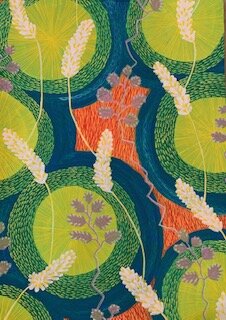I was walking with friends at first, when it was still allowed, but later when we had to stay close to our homes, I walked around the nearby vineyards, my garden & small wild slope. With Winter turning to Spring, then to Summer, the countryside here offered something amazing each day & it is this exuberance of nature, that inspired these patterns.